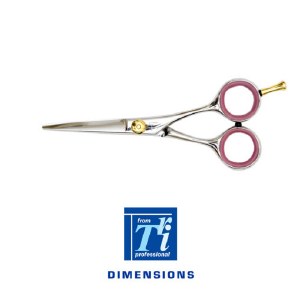 TRI Dimension Plus 5.5" is a classic straight scissors with gold tension wheel and pink finger rings.