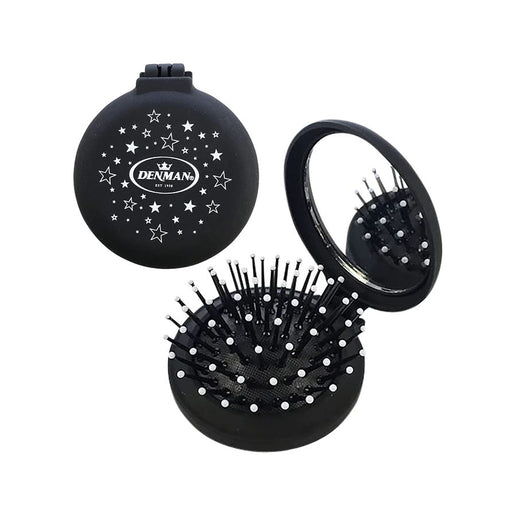 Denman D7 Compact Hairbrush features smooth, ball-tipped retractable pins and vanity mirror.