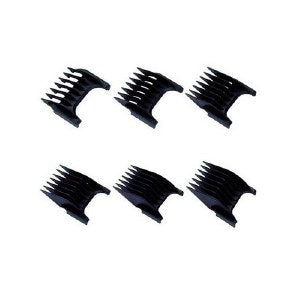 The Wahl Slide-on Attachment Combs Set consists of six plastic "slip on" combs. They are designed to slide on the side of the blade rather than cli...