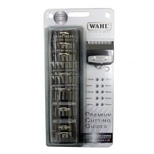 A pack of 10 Premium Cutting Guides including grades 1-8, ½ and 1½ . The Wahl Premium cutting guides come with rounded teeth for a smoother ...