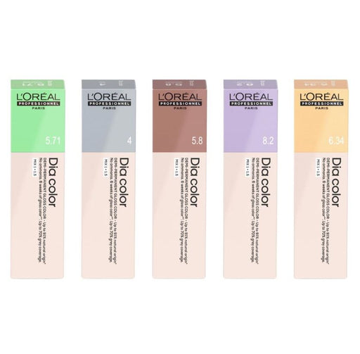 Dia color is an alkaline demi-permanent gloss colour with no ammonia*. The portfolio includes 100% true-to-tone natural reflects. Formulated with u...